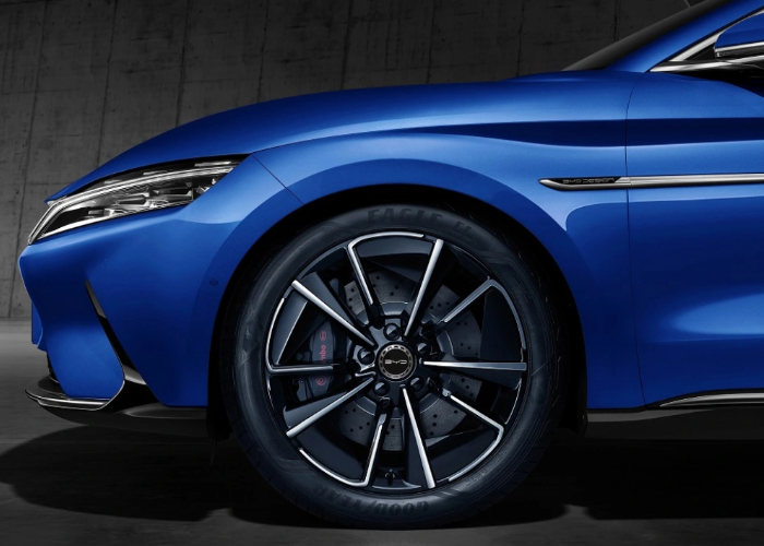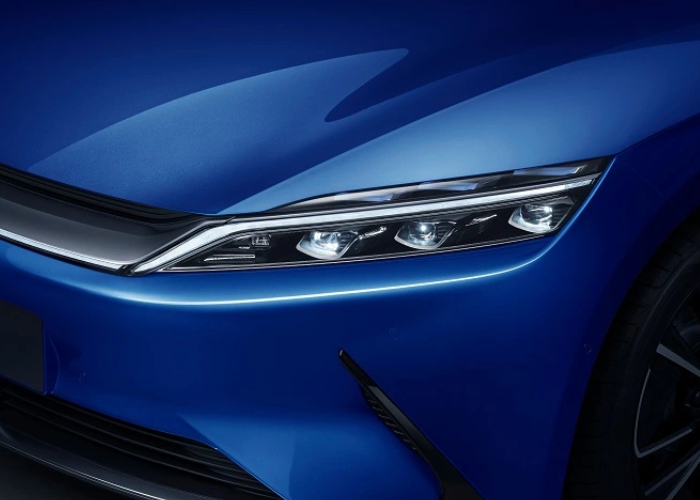El frente delantero de BYD Han está diseñado con el último lenguaje de Dragon Face, combinado con luces atractivas, generando una visible declaración de elegancia.